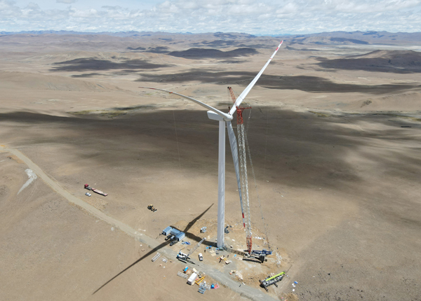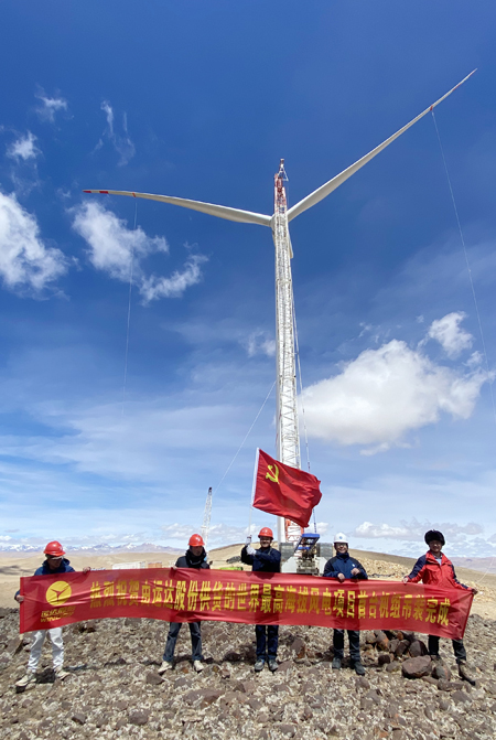 5139.1m,威尼斯9499登錄入口機組在世界最高海拔風(fēng)電場順利吊裝